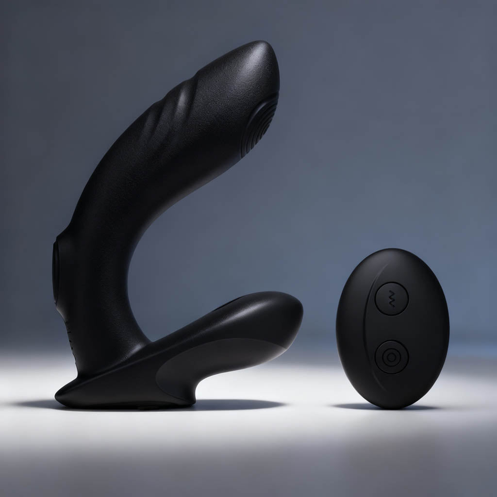 3. Press the top button of the remote control to cycle through vibration modes. To control the P-spot tapping speeds, press the bottom button.