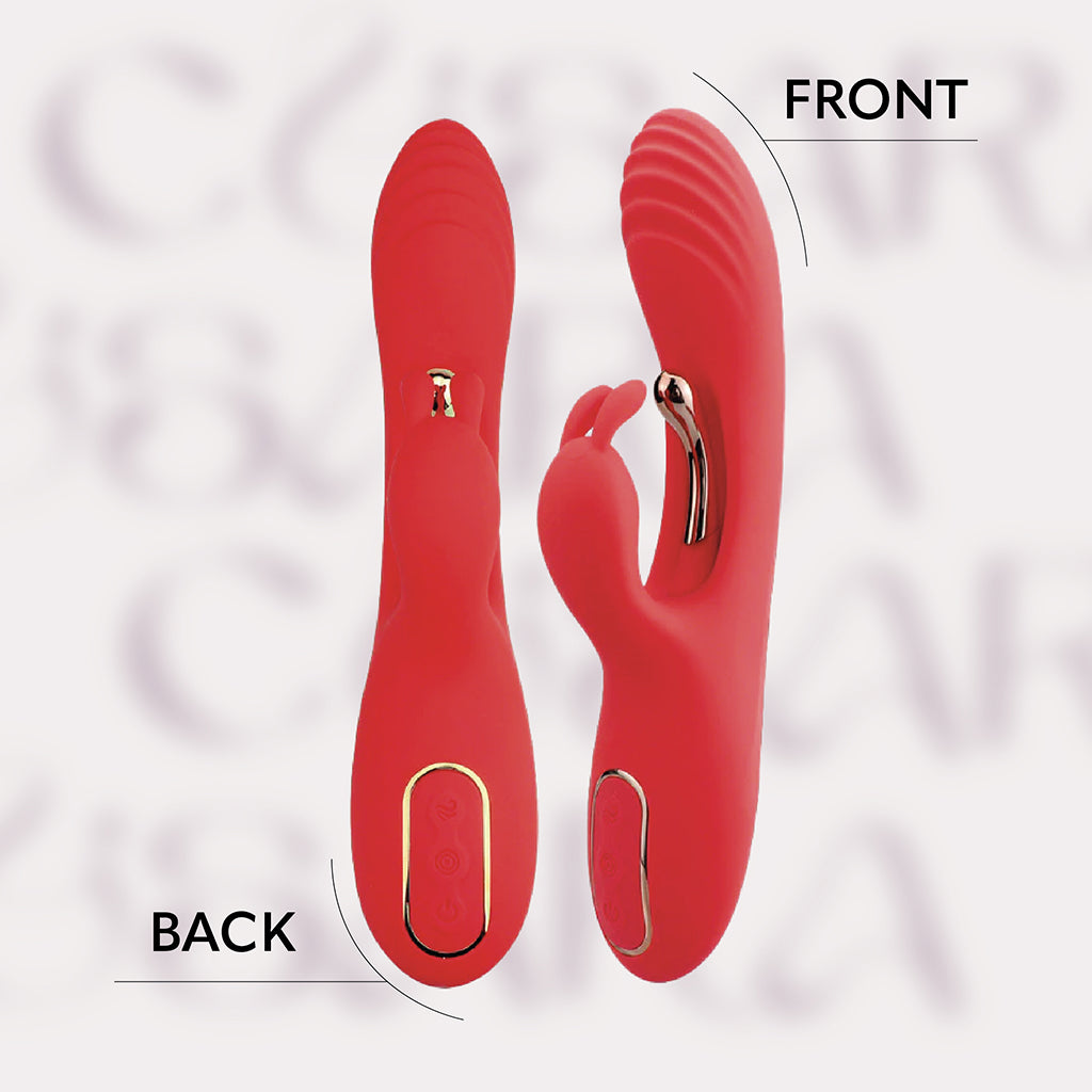 The Velvet Red Rabbit is designed to deliver triple the pleasure with its unique three-point stimulation. Featuring 9 modes for the head, 9 for the G-spot shaft, and 9 for the rabbit ears, this vibrator offers a total of 27 customizable sensations. Made from silky liquid silicone and ABS, it feels luxurious against the skin while remaining body-safe and durable. With a waterproof design and whisper-quiet motor, Velvet Red Rabbit is discreet, versatile, and perfect for both solo sessions and partner play. Its ergonomic build ensures comfort and precision, letting you experience blended orgasms like never before.
